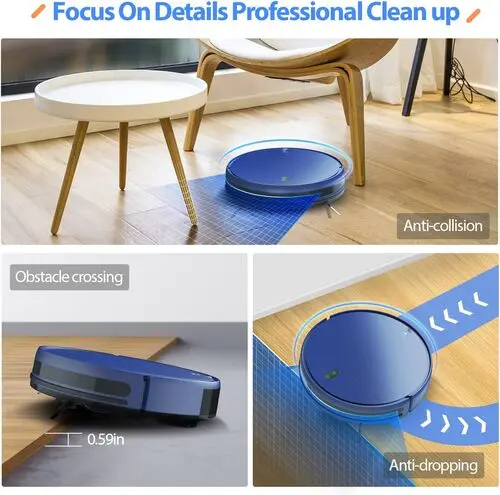 - 【Anti-Bump and Anti-Fall】: Vacuum robot is equipped with intelligent sensing technology, including anti-drop sensors and an infrared buffer anti-collision board. floor vacuum robot can identify and avoid walls, stairs, furniture, and obstacles to prevent collisions and falls. Plus, with boost-Intellect technology, robot vacuum cleaner automatically increases suction power within seconds when cleaning the floor to the carpet.